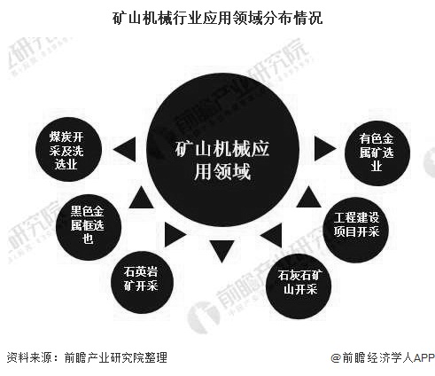 矿山机械行业主要下游市场需求方面,作为采矿和选矿的设备,矿山机械多应用于煤炭开采及洗选业、有色金属矿选业、黑色金属矿选业、石灰岩矿选业、石英岩矿选业和工程建设项目等领域,其主要应用是帮助煤炭、有所金属、钢铁、建材等工业部门进行矿山开采,同时还用于对上述行业所需原材料进行在加工和深加工,作为先进的技术设备,矿山机械还能为公路、铁路和水电等特大工程建设项目服务,为其施工提供方便。