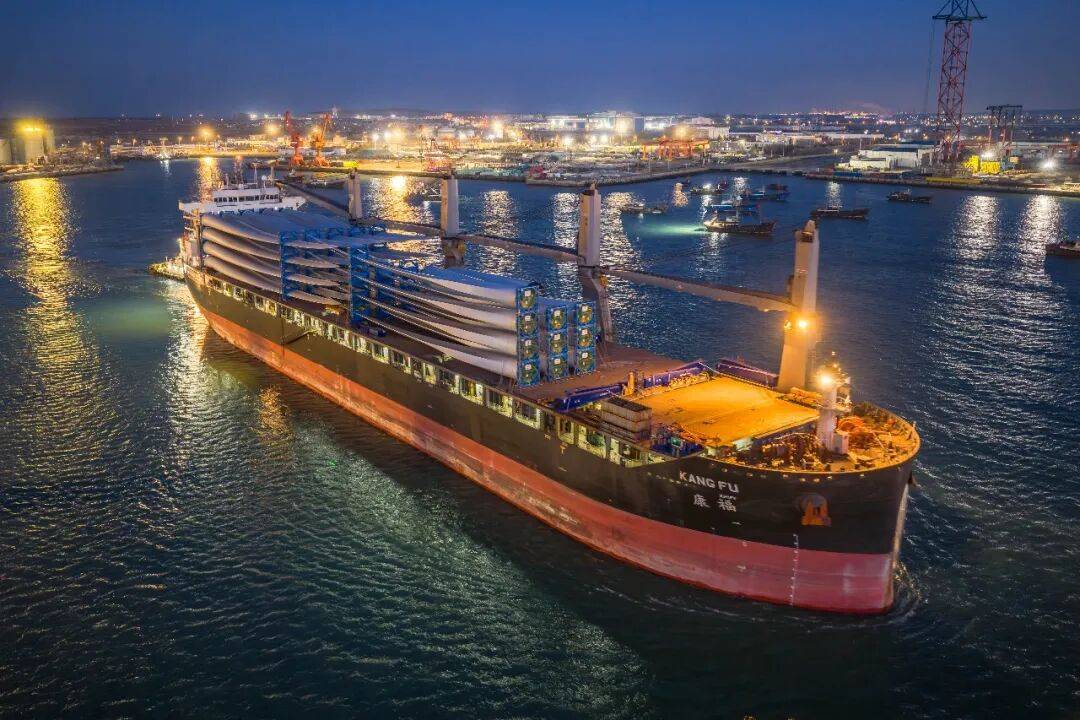 7.1万吨全套风电产品的“康福”轮,在烟台港蓬莱港区启航发往罗马尼亚,这是烟台港首次通过“一港直装、整机发运”模式向欧洲地区发运风电设备,标志着风电设备货种作业效能新提升,进一步巩固“中国北方海上风电母港”行业领先地位,助力全球清洁能源产供链稳定。